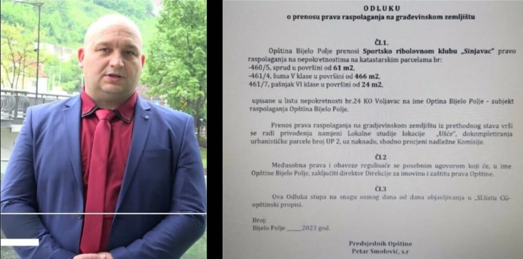 Odluka koju su pripremile partije na vlasti u Bijelom Polju i koju planiraju danas da izglasaju da se porodici Dulović pokloni ušće Bistrice i priobalno zemljište preko Sportskog ribolovnog društva ,,Sinjavac“ je nezakonita kaže Admir Camić, predsjednik Partije Pravde i Pomirenja u Bijelom Polju.