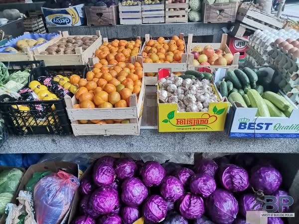 Kilogram krompira – 1. 00 euro, bijeli kupus 0. 50 eura, crveni kupus 0. 80 eura, bijeli luk domaći 6. 00 eura, crni luk 1. 50 eura, šargarepa 1. 50 eura, paprika babura 2. 00 eura, paradajz crveni 1. 80 eura, krastavac salatar 1. 50 eura, turšije u tegli od 3 kilograma iznosi 12,00 eura , spanać 3,00 eura, blitva 2,50 eura, tikvice 2,00 eura, kilogram bundeve 1.50 eura, jaja kornet 6,00 eura, domaća jaja 10 kom 4,00 eura.